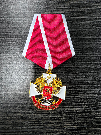 5.Знак носится на левой стороне груди ниже государственных наград СССР и Российской Федерации, ведомственных наград государственных органов РФ, после других общественных наград.
